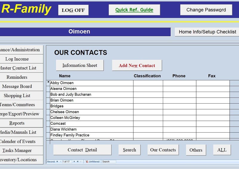 R-Family offers a complete database software program for managing and organizing data as well as producing documents for any home wanting to improve their data management.